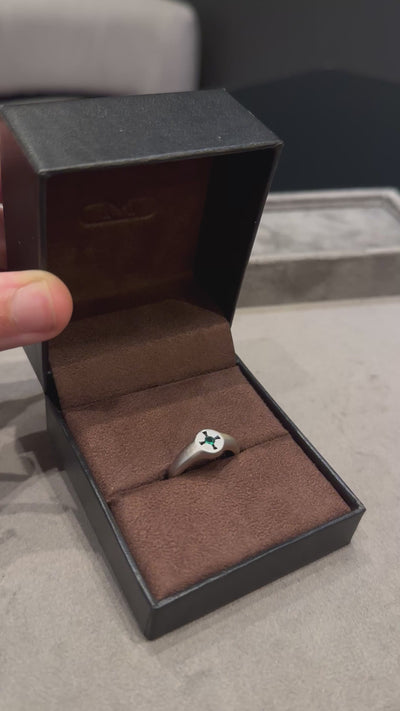 O Anel Verde Imperial é uma joia imponente desenvolvida para quem valoriza autenticidade e presença. Produzido em Prata 925 com banho de Ouro Branco 18k, possui acabamento escovado que contrasta com seu símbolo central de traços firmes e geometria minimalista. Ao centro, uma zircônia verde intensa se destaca, evocando força, elegância e singularidade. Com ajuste regulável, a peça une design contemporâneo e espírito clássico, traduzindo visualmente proteção, autoridade e distinção. Pode ser usado sozinho ou em composições modernas, sempre com protagonismo.