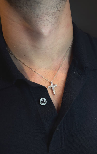 O Colar Grace é uma joia que une sofisticação e significado em cada detalhe. Confeccionado em Prata de Lei com banho de Ouro Branco 18k, apresenta um pingente em formato de cruz adornado com pedras de Moissanite de 3 mm — gemas renomadas pelo brilho incomparável e pureza excepcional.