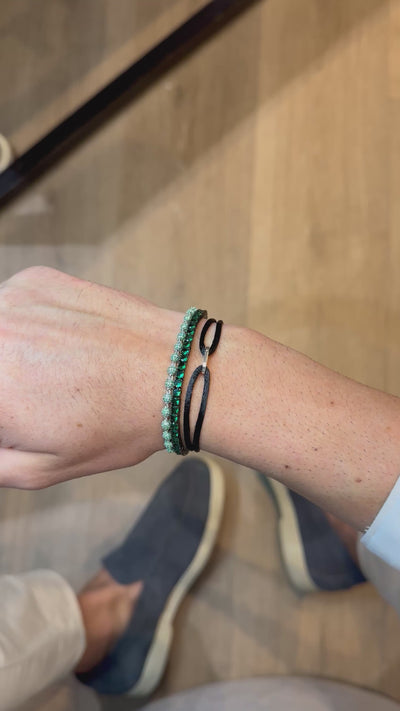 Três expressões distintas da sofisticação Milano, reunidas em um conjunto exclusivo que eleva qualquer composição. Cada peça é confeccionada em Prata de Lei de alta joalheria, com banho de Ouro Branco 18k, garantindo brilho duradouro e acabamento refinado. A Riviera Verde de 3 mm, com banho de Ródio Negro, adiciona profundidade e contraste, realçando ainda mais o tom vibrante das pedras.