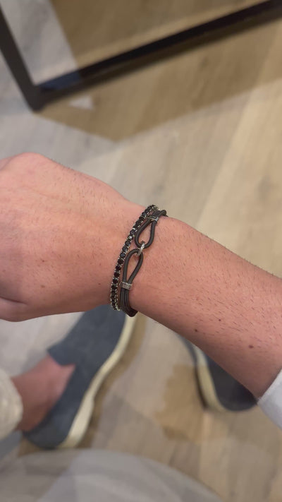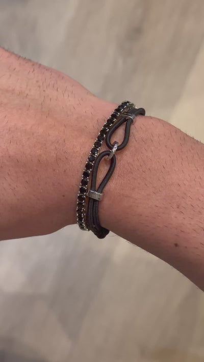 O Conjunto Aria Nera une leveza e sofisticação em uma combinação perfeita. A Pulseira Noar oferece conforto e versatilidade com seu elástico importado e pingentes em Prata de Lei, equilibrando minimalismo e elegância. A Riviera Pegli de 3 mm acrescenta luxo e distinção com suas zircônias negras cravejadas em Prata de Lei com banho de Ouro Branco 18k, trazendo brilho intenso e acabamento refinado. Juntas, essas peças criam um conjunto moderno, versátil e sofisticado — ideal para quem busca estilo, elegância e atenção aos detalhes em qualquer ocasião.