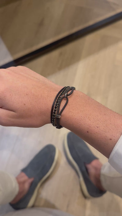 O Conjunto Trinità é a expressão máxima de elegância contemporânea, reunindo três pulseiras icônicas em perfeita harmonia. A Pulseira Noar oferece conforto e versatilidade com seu elástico importado e pingentes em Prata de Lei, equilibrando minimalismo e presença. A Riviera Pegli de 3 mm adiciona luxo e destaque com suas zircônias negras cravejadas em Prata de Lei com banho de Ouro Branco 18k, garantindo brilho intenso e acabamento refinado. Já a Pulseira Verona, com seu fio italiano ajustável, traz sutileza e elegância para qualquer ocasião.