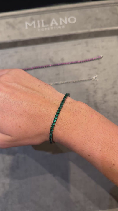 A Nera Smeraldo destaca o contraste elegante entre profundidade e luminosidade, confeccionada em Prata de Lei com banho de Ródio Negro. Cravada com zircônias verdes de 3 mm em lapidação premium, apresenta brilho intenso e sofisticado. Sua estrutura articulada em elos contínuos oferece conforto, flexibilidade e acabamento refinado. Com fecho gaveta de segurança, esta joia é ideal para quem busca presença e elegância em uma peça minimalista e contemporânea. Acompanha garantia vitalícia.