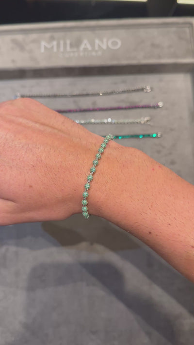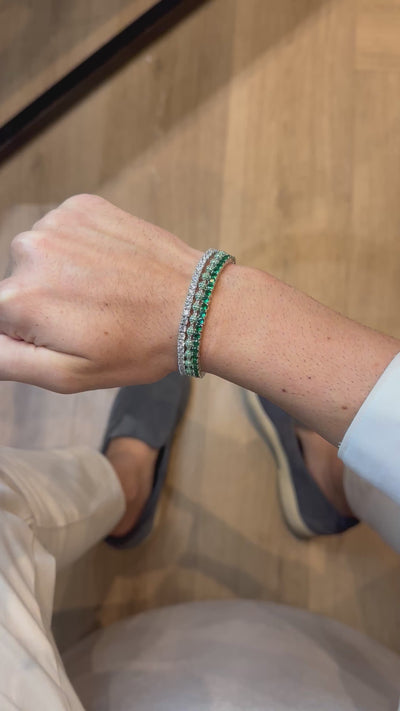 A Pulseira Oliva é confeccionada em Prata de Lei com banho de Ouro Branco 18k e cravada com zircônias verdes lapidadas, que adicionam frescor, brilho e sofisticação ao visual. Seu design formado por elementos esféricos contínuos cria textura, relevo e presença na medida certa, transformando a peça em um destaque sutil, porém marcante. Com acabamento premium e durabilidade excepcional, é a escolha perfeita para quem busca equilíbrio entre cor, elegância e atenção aos detalhes. Acompanha garantia vitalícia.