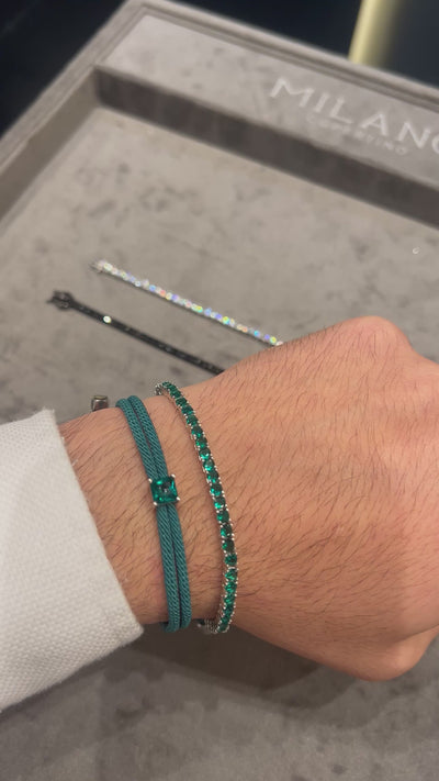 A Pulseira Verde Alta é uma joia de design minimalista, mas repleta de personalidade, confeccionada com fio trançado importado que oferece textura, resistência e sofisticação. No centro, uma zircônia na tonalidade esmeralda se destaca, cravada em base de Prata de Lei com banho de Ouro Branco 18k, criando um contraste elegante e atemporal. Leve, ajustável e versátil, está disponível em quatro cores exclusivas, perfeitas para diferentes estilos e ocasiões. Uma peça marcante, discreta e pensada para acompanhar você em todos os momentos.